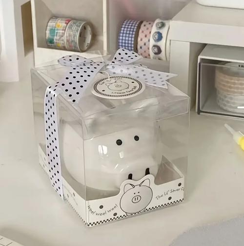 Diese liebevoll gestaltete Keramik-Spardose in Schweineform ist nicht nur praktisch, sondern auch ein echter Hingucker. Mit ihrem charmanten Design eignet sie sich perfekt als dekoratives Wohnaccessoire, Geschenkidee oder funktionaler Münzsammler.